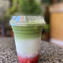 Went to World Coffee House specifically for a strawberry matcha latte. Yum!!!! The biggest they offer is a 16 ounce. Very nice people. It's very cute Parking is a pain but well worth it.
